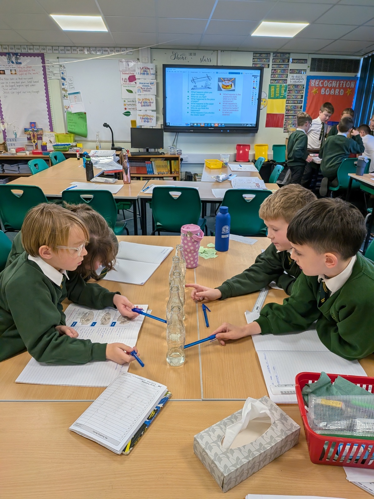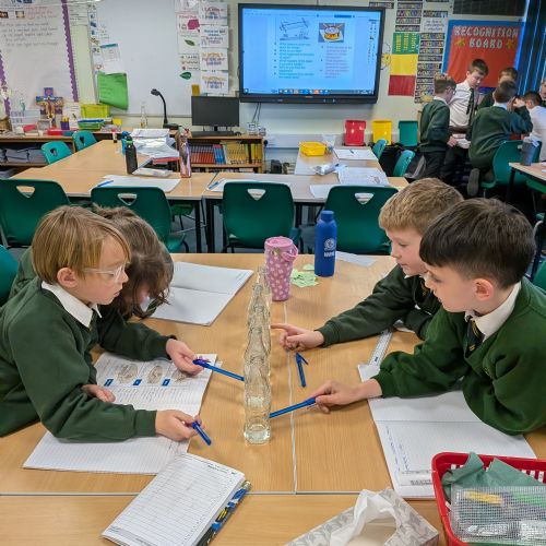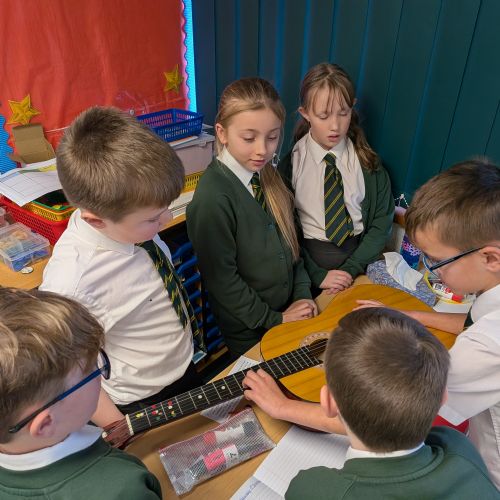 Year 4 investigating pitch using a variety of musical instruments.